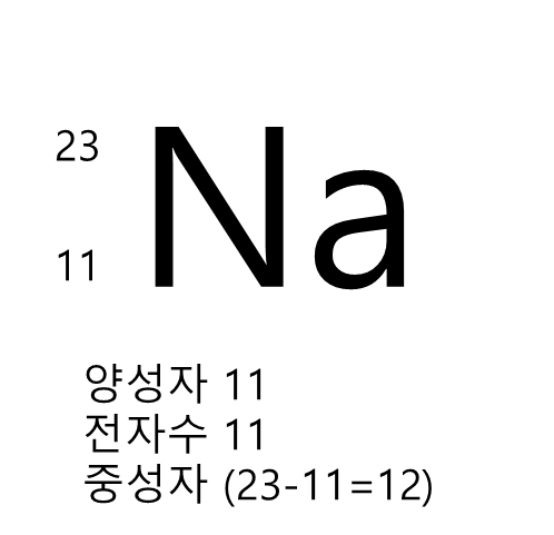 1) 원자의 질량수 = 양성자 수 + 중성자 수