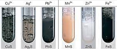 검은색 : CuS, Ag₂S, PbS, FeS, NiS