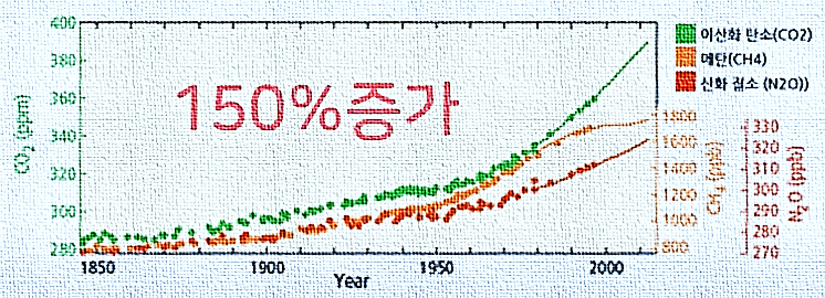 19세기 초부터 메탄가스 배출량이 150% 증가했다고 한다.