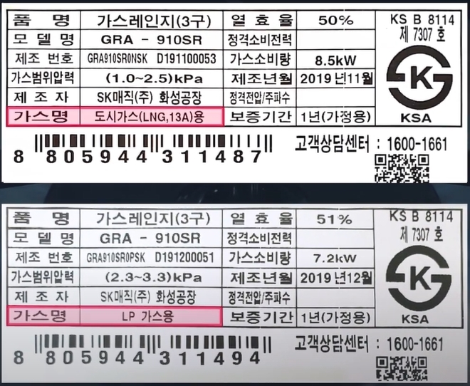 가스레인지가 도시가스용인지 LP 가스용인지 확인하시고 만일 용도가 다른 제품이라면 구입처에 연락하셔서 열변 신청하시면 됩니다.
