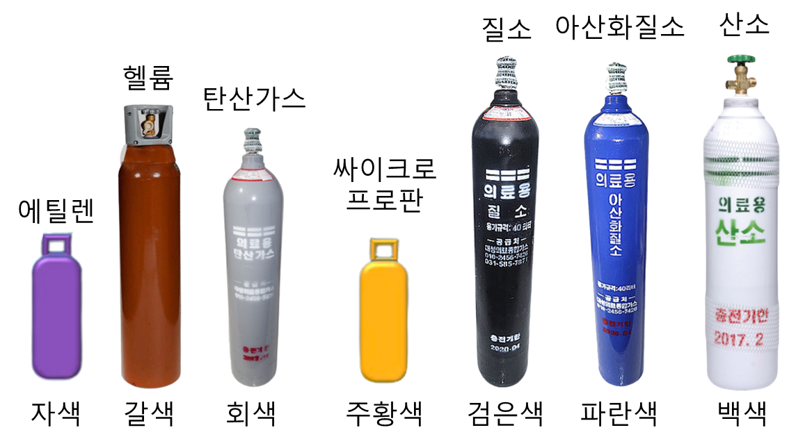 | 에틸렌 | 헬륨 | 탄산가스 | 싸이크로프로판 | 질소 | 아산화질소 | 산소 |