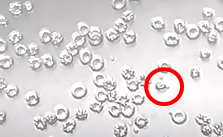 적혈구가 쪼그라들어 별사탕 같은 모습을 하고 있다.