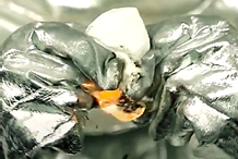 과산화나트륨을 소량 휴지에 넣고 돌돌 말아 마찰을 시켜보면 불이 붙는 것을 확인할 수 있다.