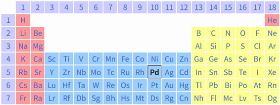 팔라듐은 원자번호 46번, 주기율표에서 10족에 속하는 백금족 금속이다.