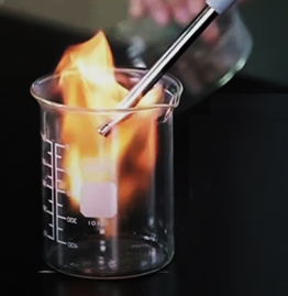 화장솜에 아세톤을 묻혀 위쪽에 두고, 아래쪽에 불을 붙이면 위까지 불이 전달된다.